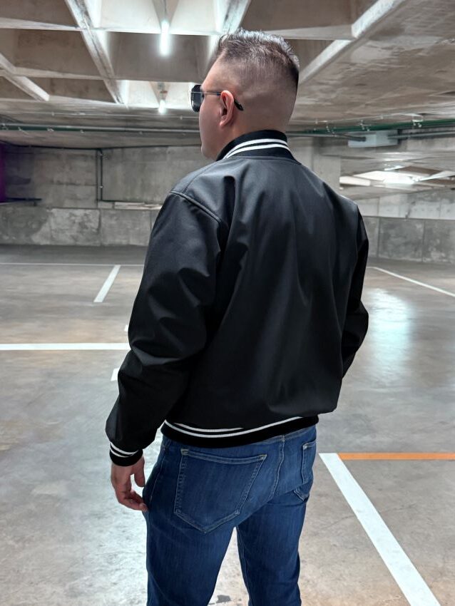 Chamarra con un diseño innovador, con gorro incluido con opción a ocultarse, fabricada con tela repelente al agua.