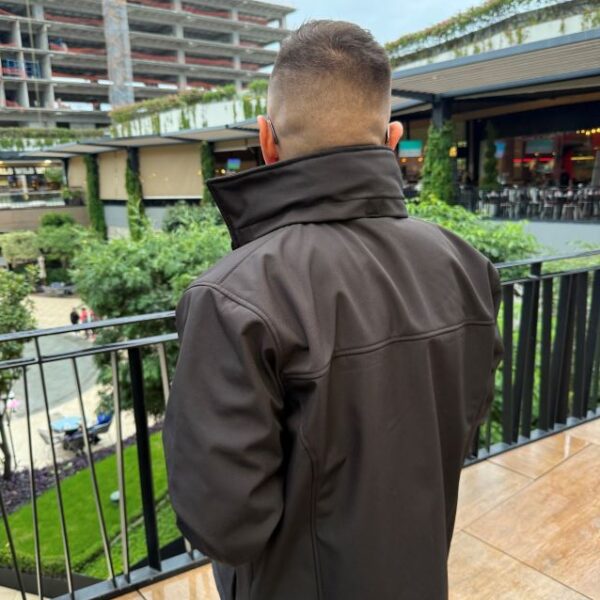 Chamarra con un diseño innovador, con gorro incluido con opción a ocultarse, fabricada con tela repelente al agua.